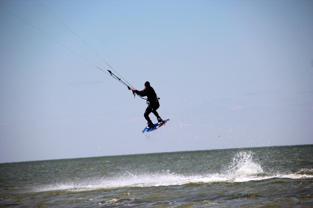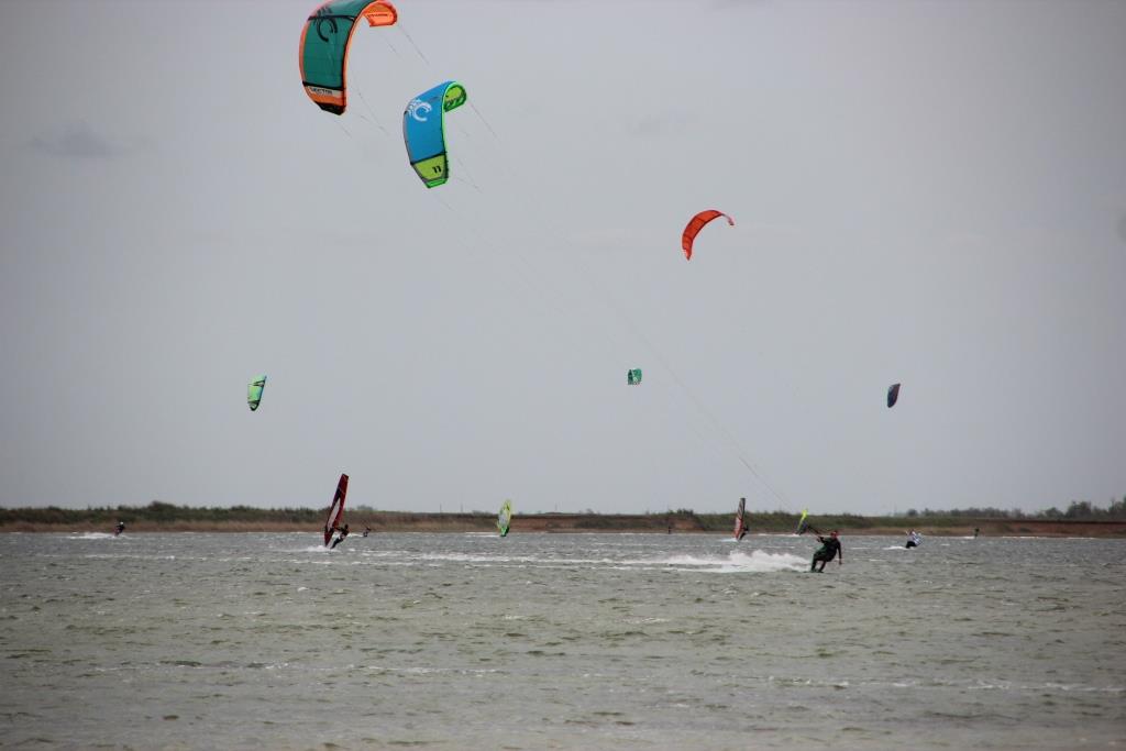 Особенно к 9 маю на воде можно было насчитать до 30 кайтов и с десяток виндсерферов.